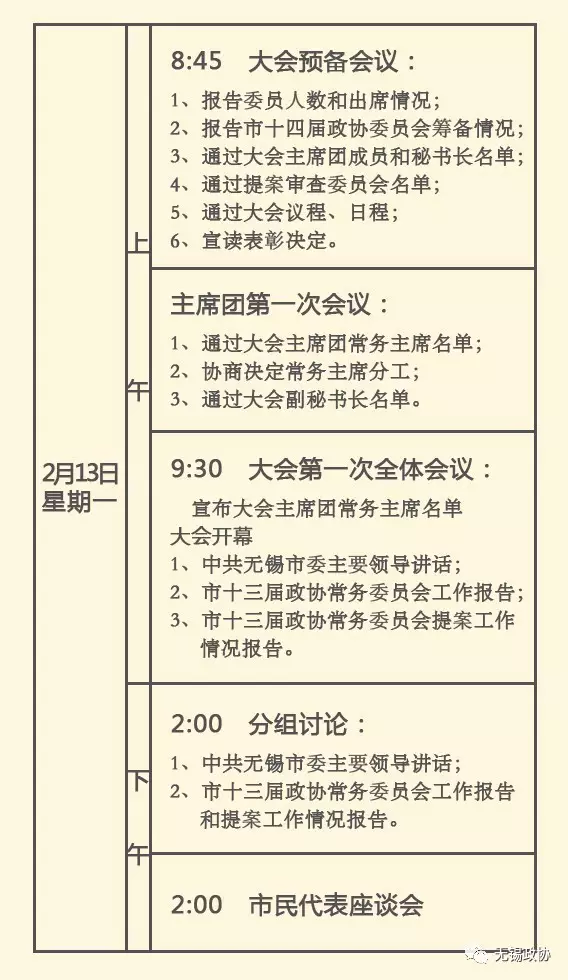 無錫市第十四屆政協(xié)一次會議將于2017年2月13日至16日召開。
