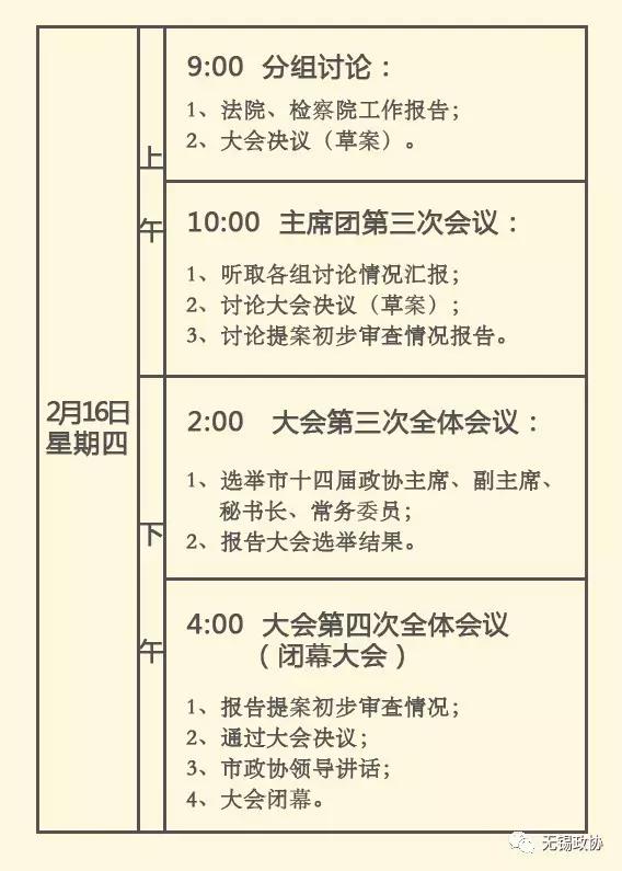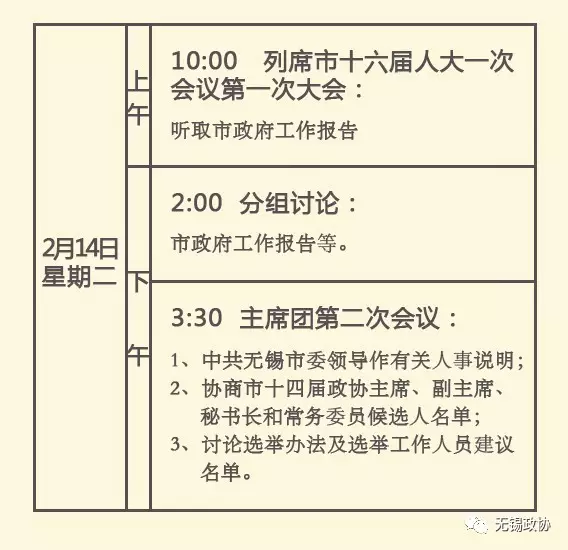 無錫市第十六屆人民代表大會第一次會議日程安排
