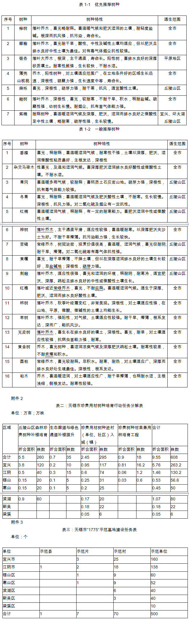 2.表二:無錫市珍貴用材樹種培育行動(dòng)任務(wù)分解表