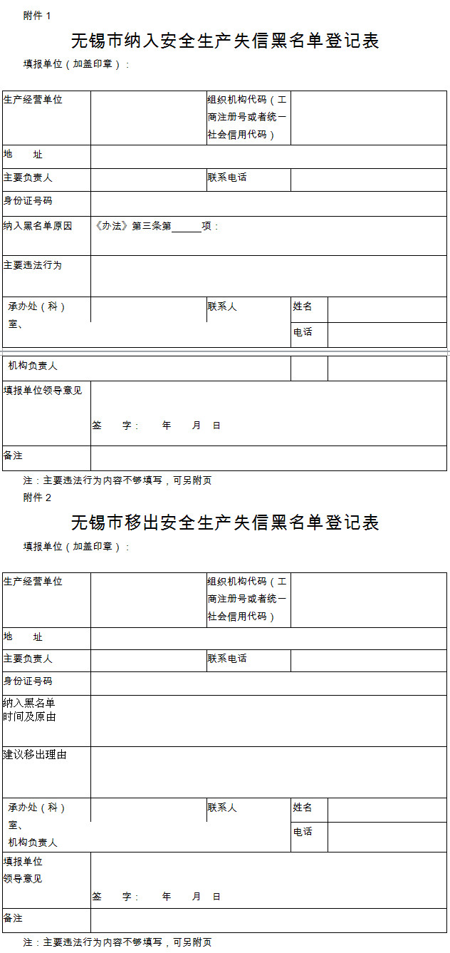 附件:1.無(wú)錫市納入安全生產(chǎn)失信黑名單登記表