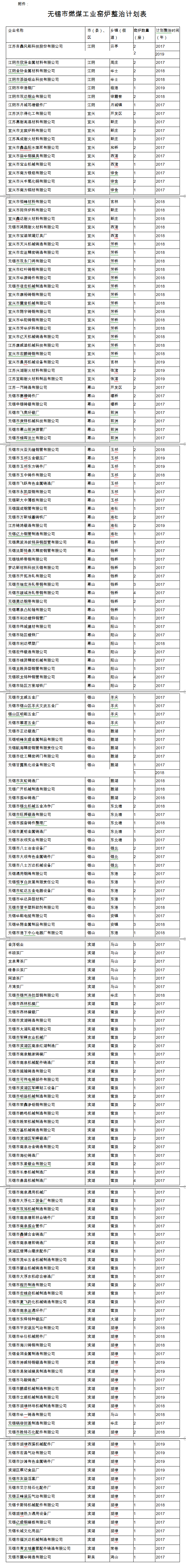 附件:無錫市燃煤工業(yè)窯爐整治計劃表