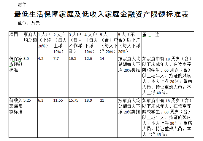 附件:最低生活保障家庭及低收入家庭金融資產(chǎn)限額標(biāo)準(zhǔn)表