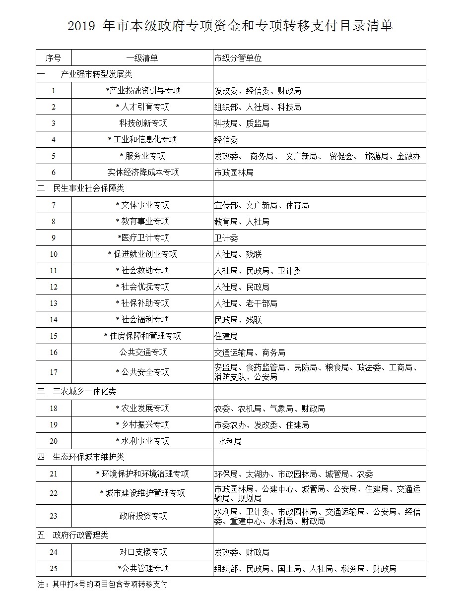 | 內(nèi)容概述 | 2019年市本級(jí)政府專項(xiàng)資金和專項(xiàng)轉(zhuǎn)移支付目錄清單 | ||||