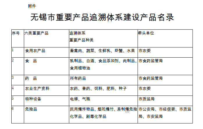 附件:無(wú)錫市重要產(chǎn)品追溯體系建設(shè)產(chǎn)品名錄