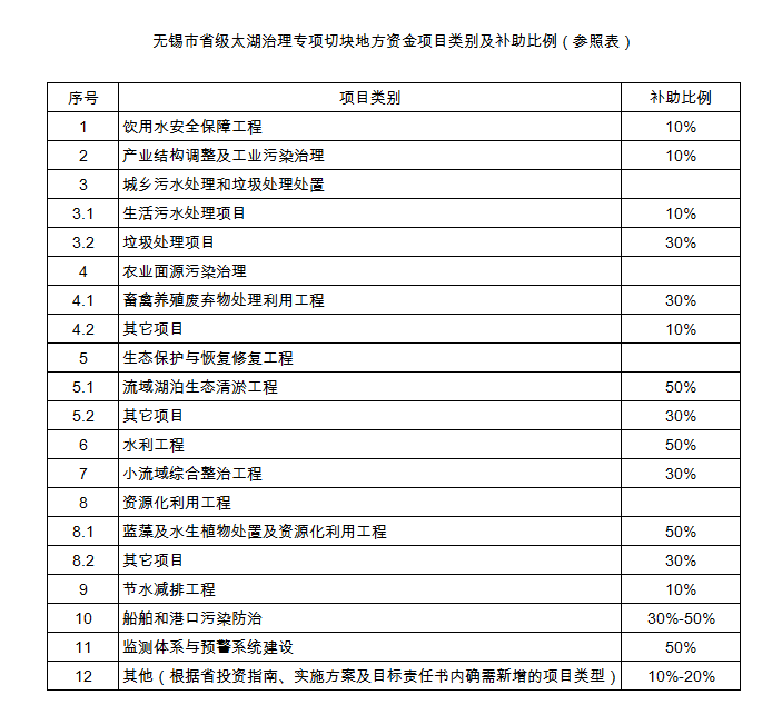 附件:無錫市省級(jí)太湖治理專項(xiàng)切塊地方資金項(xiàng)目類別及補(bǔ)助比例(參照表)