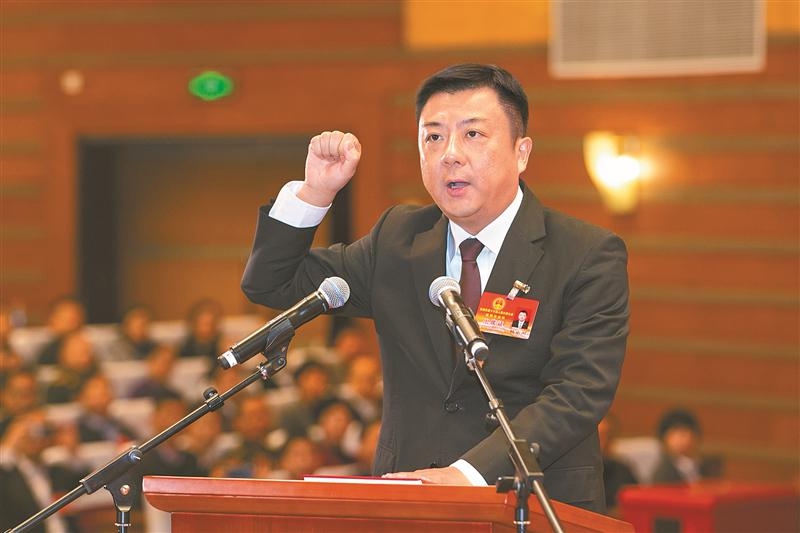 1月11日,新當(dāng)選的無(wú)錫市人民政府市長(zhǎng)杜小剛向憲法宣誓。(石覺(jué) 攝)