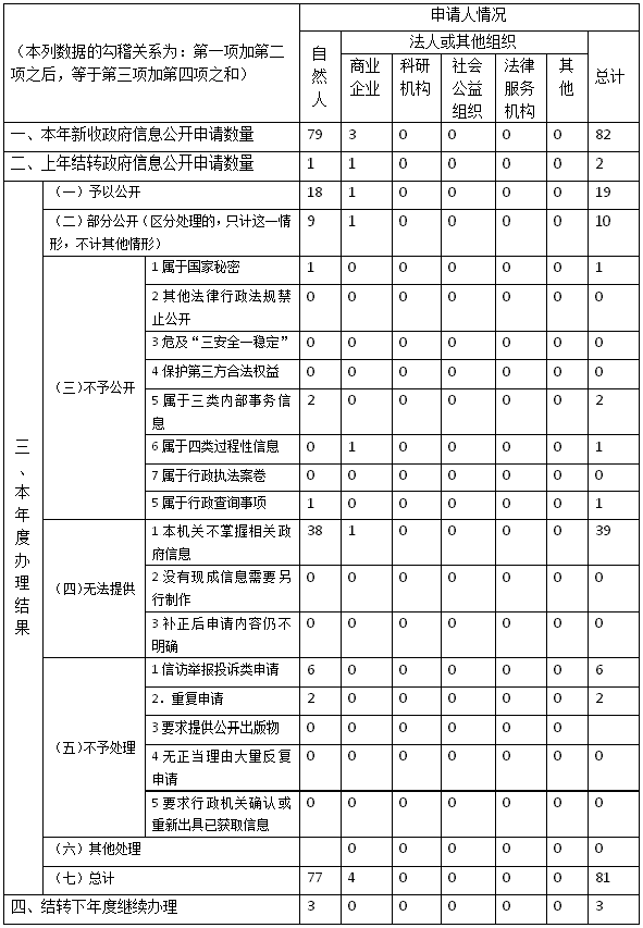 三、收到和處理政府信息公開申請情況