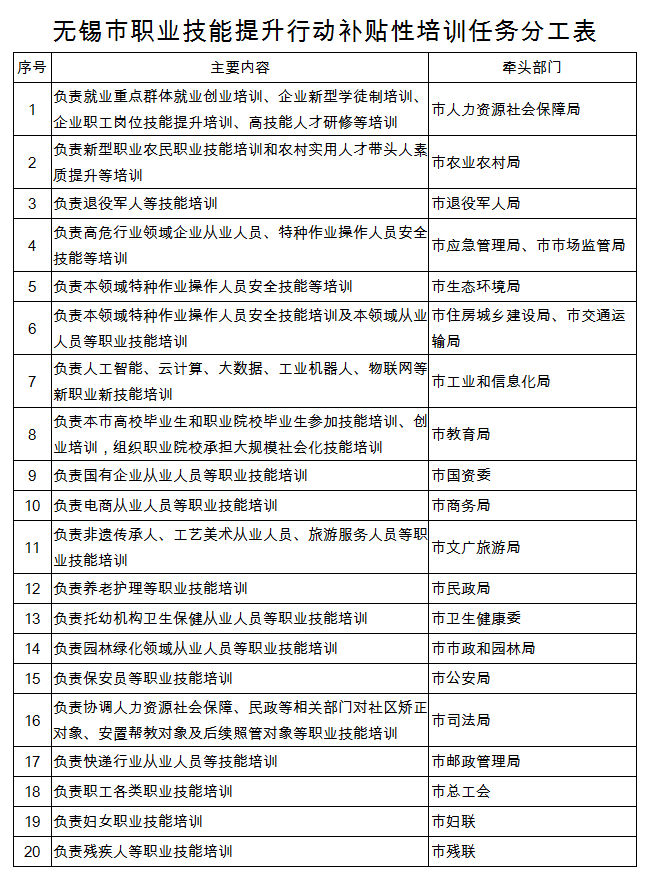 附件:無錫市職業(yè)技能提升行動(dòng)補(bǔ)貼性培訓(xùn)任務(wù)分工表