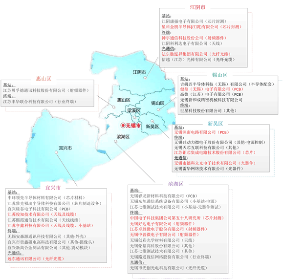 無錫5G主產(chǎn)業(yè)鏈重點(diǎn)企業(yè)地域分布圖