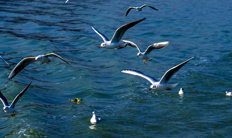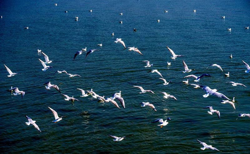 12月4日,大量紅嘴鷗在無錫黿頭渚風(fēng)景區(qū)太湖水面上翱翔。