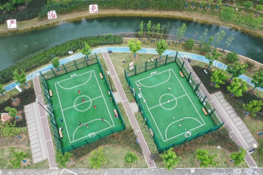 該游園分為南北兩側(cè),北側(cè)包括親水平臺(tái)和籠式足球場(chǎng),沿道兩旁設(shè)置清正廉潔主題石雕,掃描石雕上二維碼,即可收聽(tīng)廉潔故事。南側(cè)游園建設(shè)有籠式籃球場(chǎng)和有聲黨建步道,向廣大市民展現(xiàn)紅色文化。