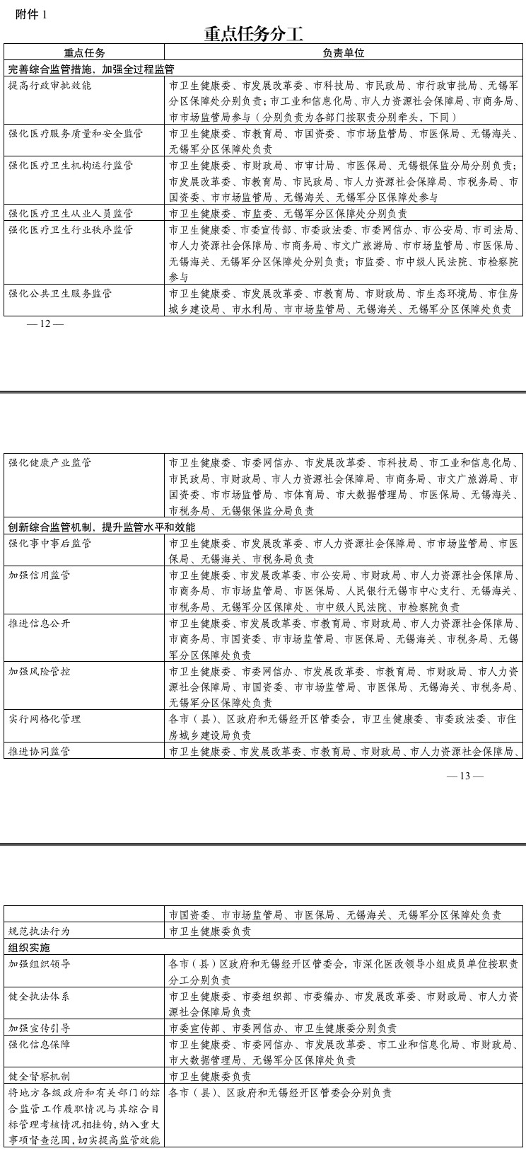 無錫市改革完善醫(yī)療衛(wèi)生行業(yè)綜合監(jiān)管制度實(shí)施方案