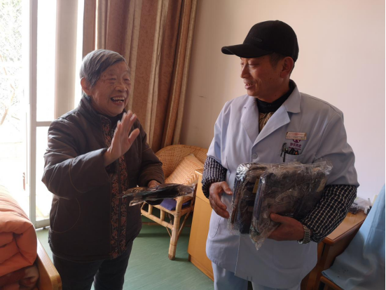 在樓層護(hù)理員的幫助下,市社會(huì)福利中心的工作人員們將一副副承載著元旦祝福與美好愿景的手套發(fā)至每一位爺爺奶奶手中,同時(shí)也將對(duì)新一年的美好憧憬帶給每一位和藹又慈祥的爺爺奶奶們。