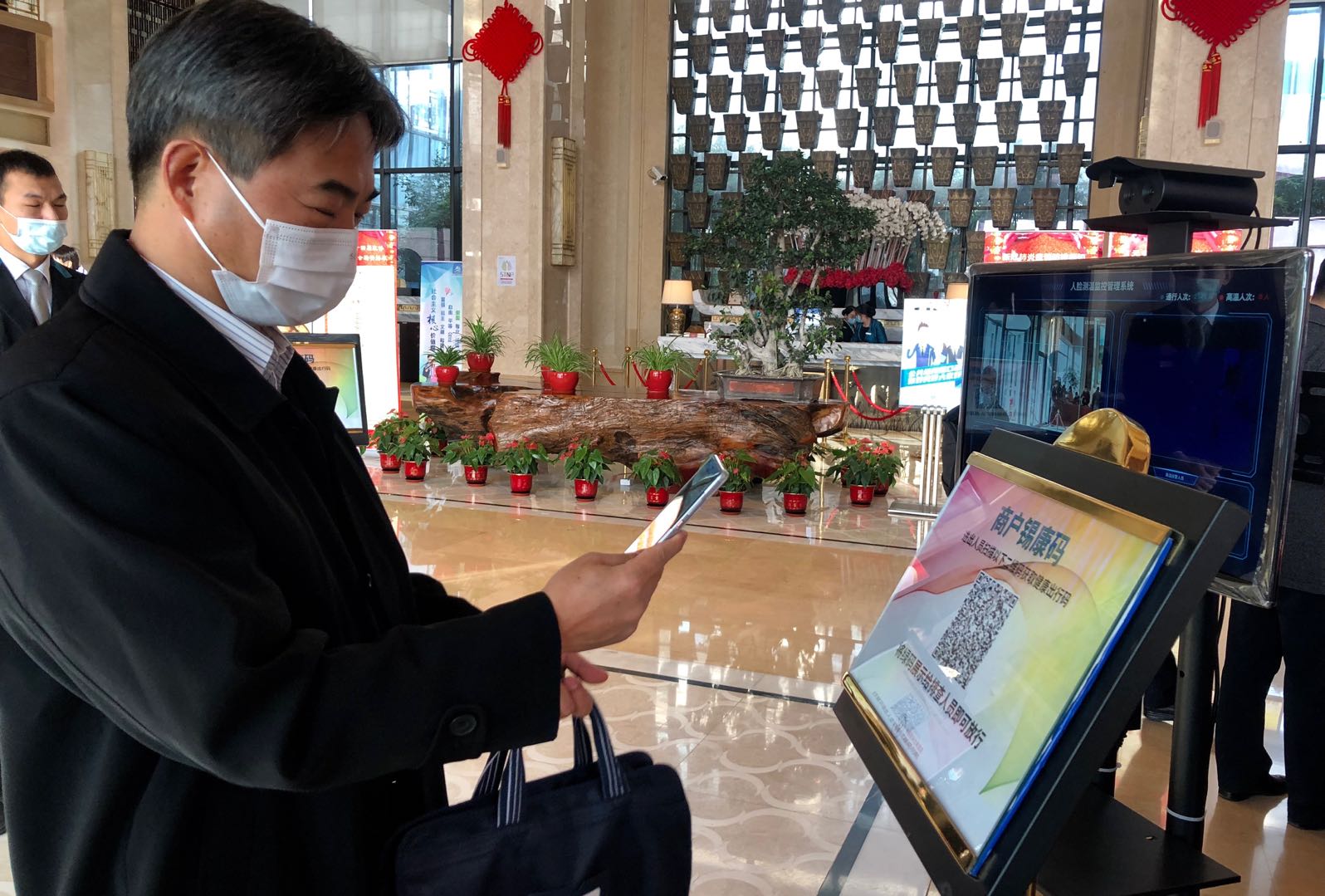 ▲政協(xié)委員掃碼體驗“政協(xié)書房”