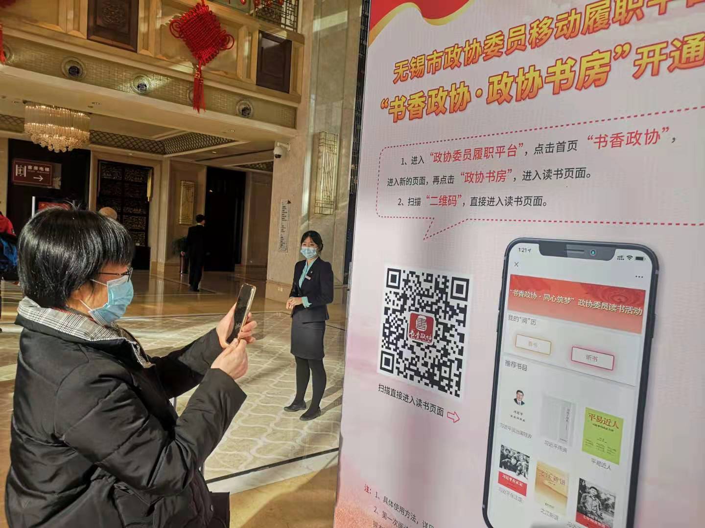 完成報到手續(xù)后,市政協(xié)委員薛鷗轉(zhuǎn)身用手機(jī)掃了掃會場海報上的二維碼,即刻進(jìn)入“政協(xié)書房”。今年,市政協(xié)與市圖書館合作,在委員移動履職平臺開設(shè)“書香政協(xié)”板塊,下設(shè)“政協(xié)書房”已建成開通。全封閉管理會議期間,委員履職之余可在“政協(xié)書房”隨時隨地免費(fèi)看書、聽書,讀書履職相促進(jìn)。