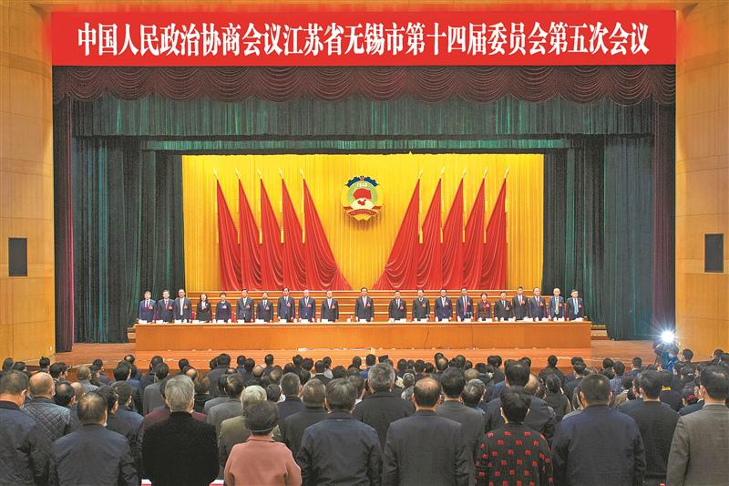 1月21日,政協(xié)無錫市十四屆五次會(huì)議在莊嚴(yán)的國(guó)歌聲中勝利閉幕。(盧易 攝)