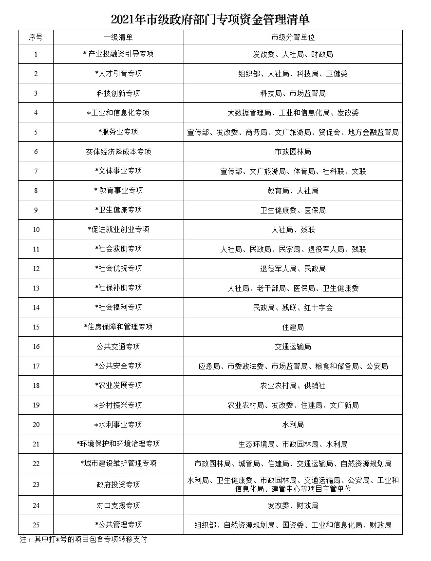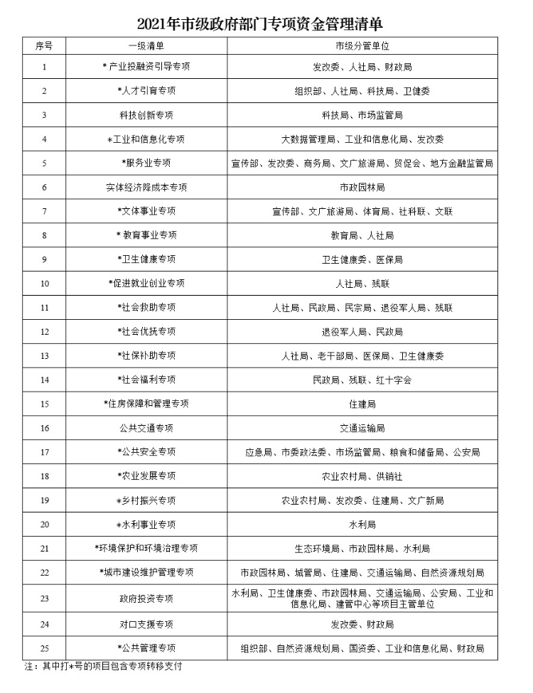 2021年市級政府部門專項資金管理清單 |