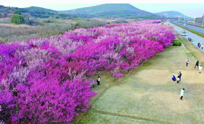 春節(jié)期間,山野上的梅花競(jìng)相吐蕊,暗香浮動(dòng)。一團(tuán)團(tuán)、一簇簇俏立枝頭,交織成斑斕的景色,粉飾了陶都,驚艷了游客,徜徉其間,清香盈袖。