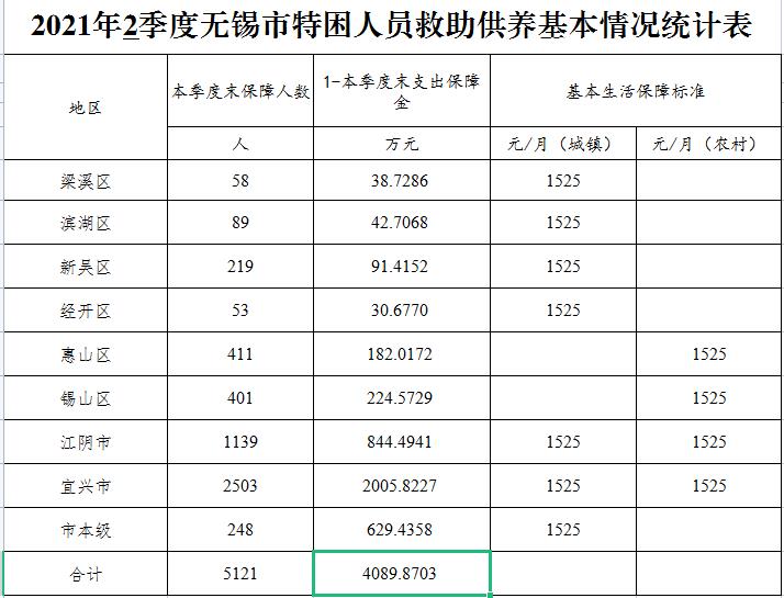 無錫市特困人員救助供養(yǎng)基本情況統(tǒng)計表(2021年2季度) |