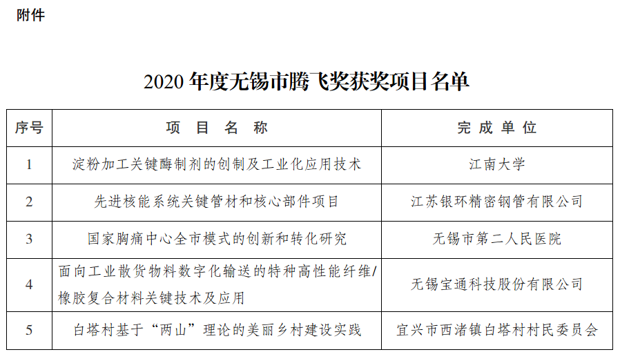 等項(xiàng)目 2020年度無(wú)錫市騰飛獎(jiǎng)的決定