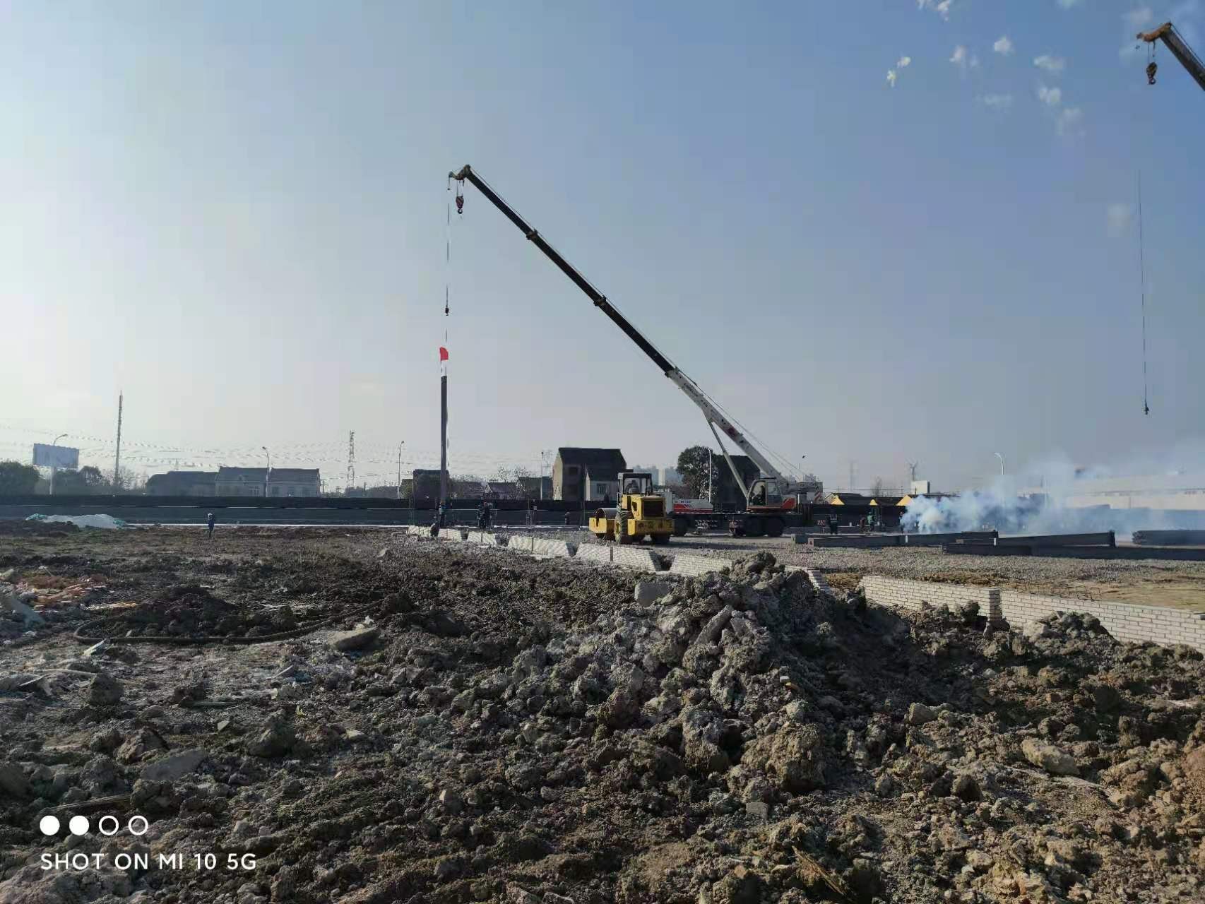 整個廠房第一根鋼柱吊裝2021年1月20日