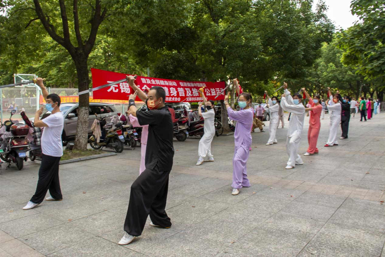 當(dāng)日上午,在無(wú)錫市武術(shù)協(xié)會(huì)和無(wú)錫市樂(lè)德健身中心黨支部的組織下,一批黨員同志熱情地到現(xiàn)場(chǎng)進(jìn)行志愿服務(wù),在黨員們的指導(dǎo)下,現(xiàn)場(chǎng)嚴(yán)格地執(zhí)行了疫情防控要求。隨后,活動(dòng)主辦方組織大家瀏覽觀看了《全民健身?xiàng)l例》的普法展牌。并引領(lǐng)大家分散集體演練了24式太極拳和健身氣功八段錦。