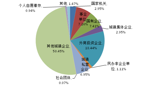 2021年三季度實(shí)繳職工數(shù)按不同性質(zhì)單位分類占比圖