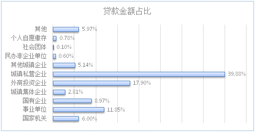 從貸款群體來看,剛需與改善型住房需求職工分別占貸款總?cè)藬?shù)的29.56%和64.04%。從單位性質(zhì)來看,以城鎮(zhèn)私營企業(yè)職工為主,貸款筆數(shù)和貸款金額占比分別為41.55%、39.88%。從購房面積來看,職工貸款購買小于90㎡、90-120㎡房屋居多,分別占貸款總?cè)藬?shù)的29.56%、38.19%。從主借人繳存基數(shù)來看,貸款主要以中、低收入職工為主,分別占貸款總?cè)藬?shù)的33.35%、63.56%,說明我市住房公積金貸款政策在保障剛需職工需求,體現(xiàn)住房公積金互助性方面發(fā)揮了較大的作用,住房公積金制度的初衷未改變。具體放貸結(jié)構(gòu)如下:
