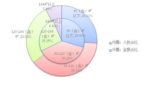 2021年三季度貸款職工數(shù)及貸款金額按購房面積分類占比圖