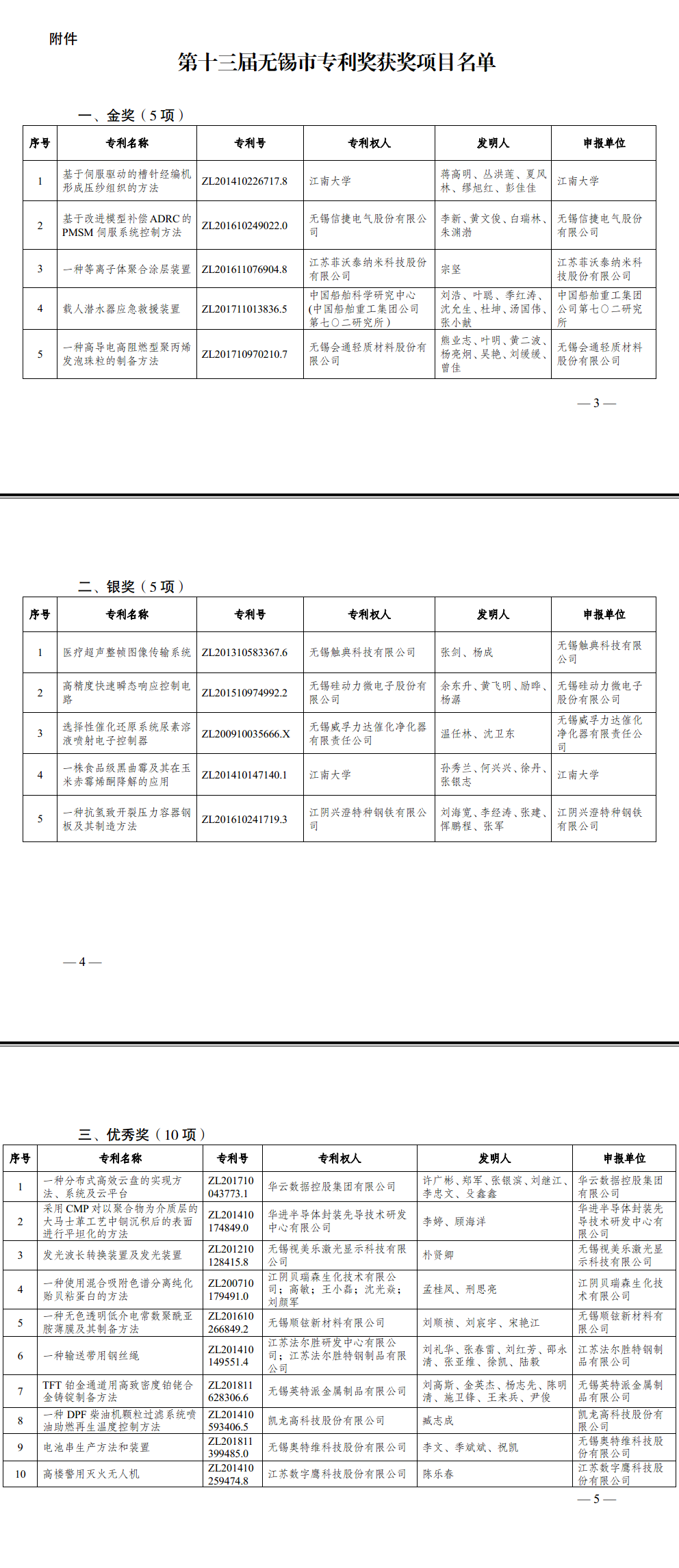 附件:第十三屆無(wú)錫市專(zhuān)利獎(jiǎng)獲獎(jiǎng)項(xiàng)目名單