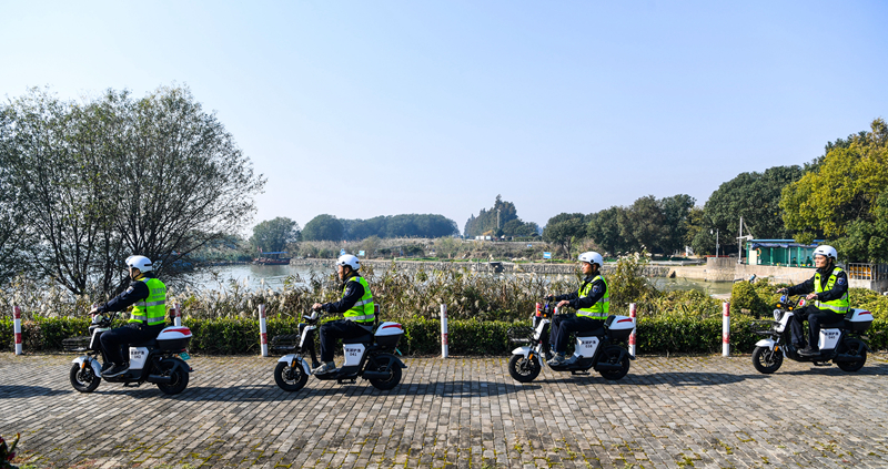 11月15日,雪浪街道護(hù)漁隊(duì)隊(duì)員在太湖沿線巡查。為更好地維護(hù)退捕期太湖生態(tài),濱湖區(qū)漁政部門(mén)與沿湖的雪浪、蠡園、馬山等三個(gè)街道緊密協(xié)作,組建了全市首批護(hù)漁專門(mén)隊(duì)伍,配備水上巡邏艇、陸上電動(dòng)巡邏車(chē)以及無(wú)人機(jī)等專業(yè)設(shè)備,對(duì)太湖沿線開(kāi)展全天候、全方位巡查護(hù)漁,嚴(yán)厲打擊偷捕等違法活動(dòng),助力太湖水產(chǎn)資源恢復(fù)。