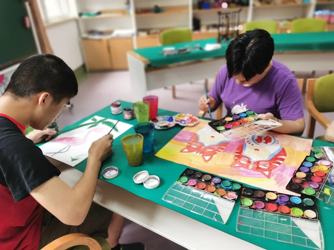 “阿姨,這是我畫的,送給你,謝謝你們!”,小畫家芳芳(化名)拿著新作品——最美抗疫戰(zhàn)士,送給了守護(hù)他們生命健康的護(hù)士。通過開展美術(shù)、音樂、體訓(xùn)和認(rèn)知感知恢復(fù)等康復(fù)課程,特教老師、康復(fù)師和護(hù)理員形成合力,幫助特困人員建立自信,提升個(gè)人自主能力,進(jìn)一步挖掘潛能,實(shí)現(xiàn)自我價(jià)值。