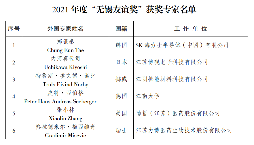 附件:2021年度“無錫友誼獎(jiǎng)”獲獎(jiǎng)專家名單