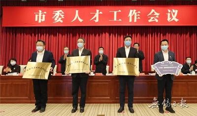 近日,在市委人才工作會議上,市委書記杜小剛為無錫市人才集團授牌,國聯(lián)集團黨委書記、董事局主席許可代表集團接受授牌,標志著我市在用市場化手段開發(fā)和配置人才資源上邁出重要一步。