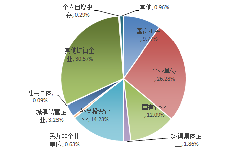2022年一季度實(shí)繳職工數(shù)按不同性質(zhì)單位分類占比圖