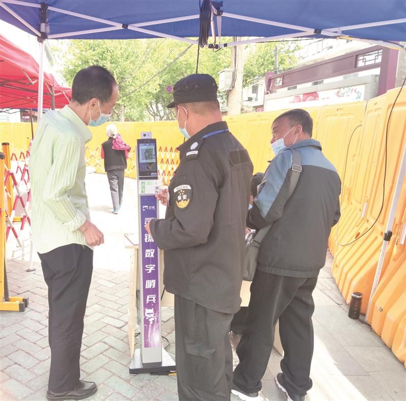 4月22日上午,“靈錫數(shù)字哨兵”在朝陽農(nóng)貿(mào)市場門口試點(diǎn)上線。記者在現(xiàn)場看到,通過新安裝的“數(shù)字哨兵”,沒有智能手機(jī)的市民出入只需要拿著身份證或者個(gè)人門鈴碼對著信息屏“掃一掃”,三到五秒鐘即可完成查驗(yàn)通行。