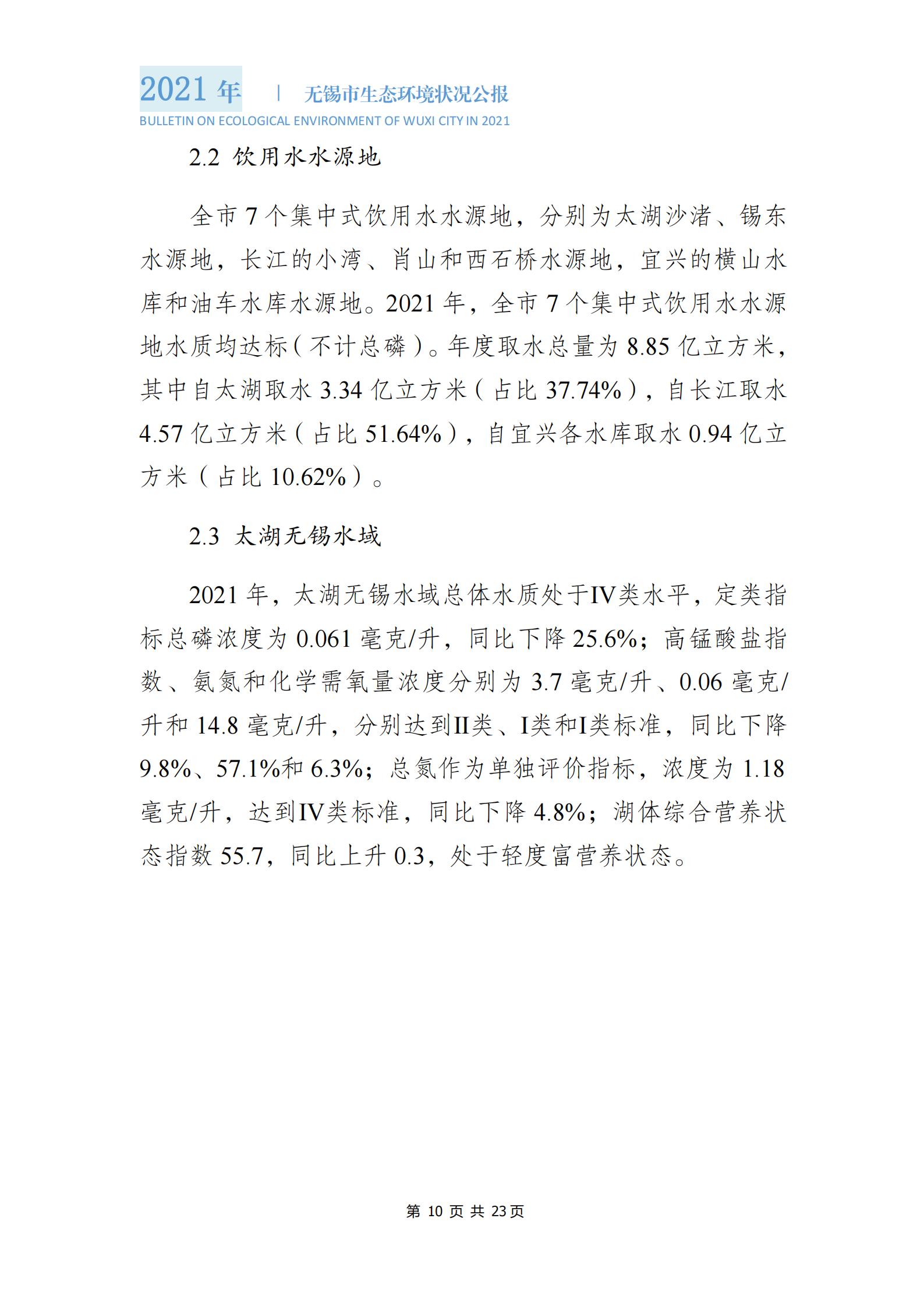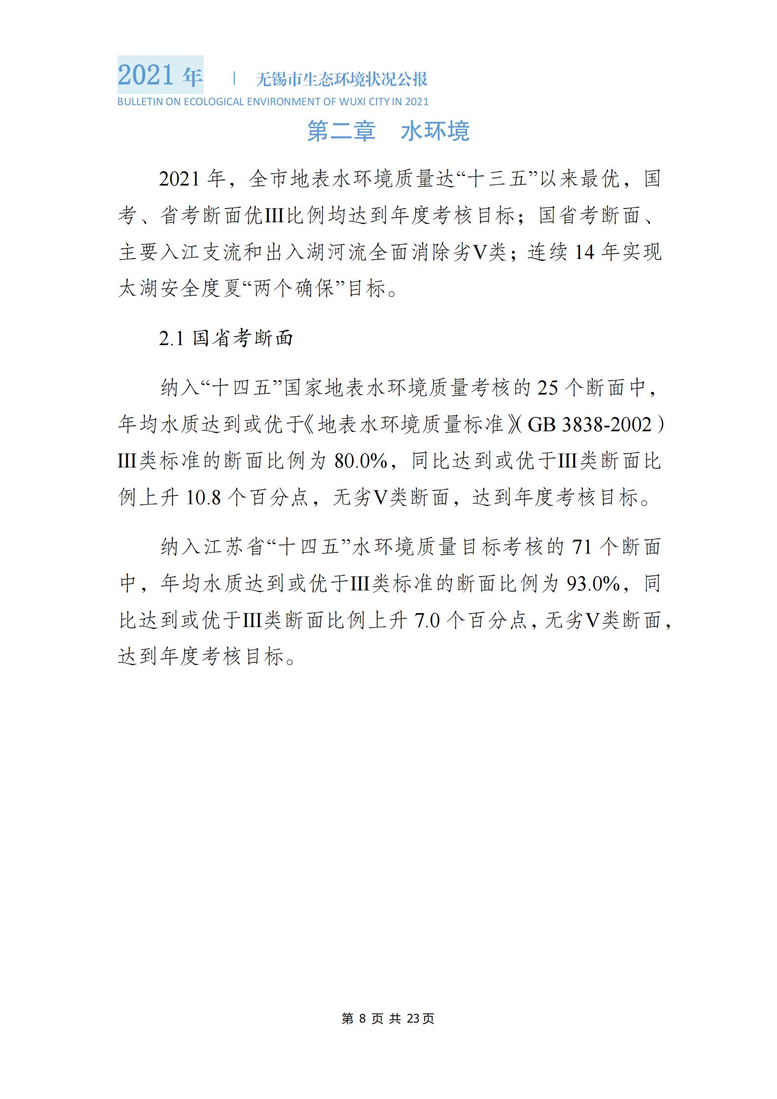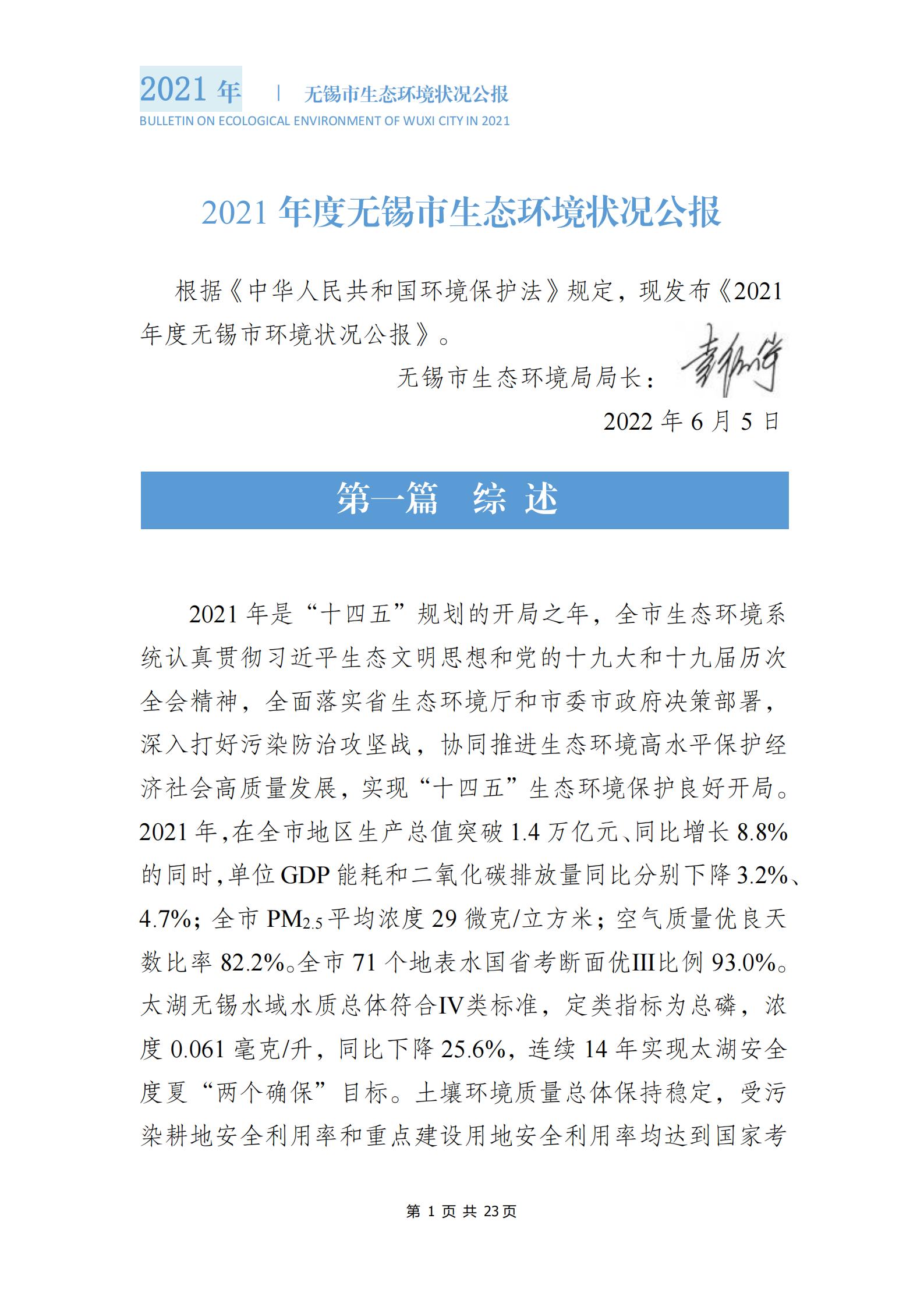 2021年度無錫市生態(tài)環(huán)境狀況公報(bào)