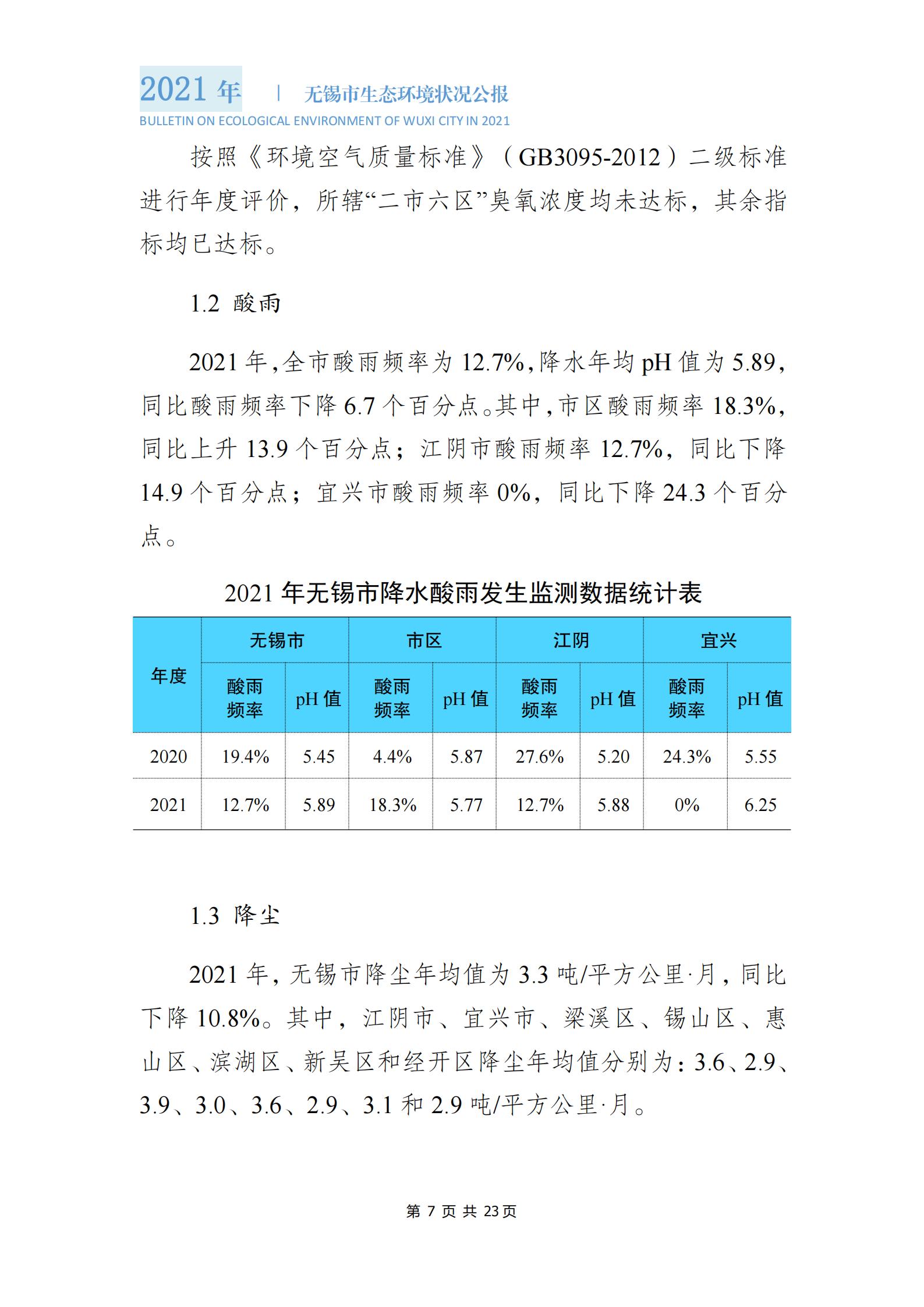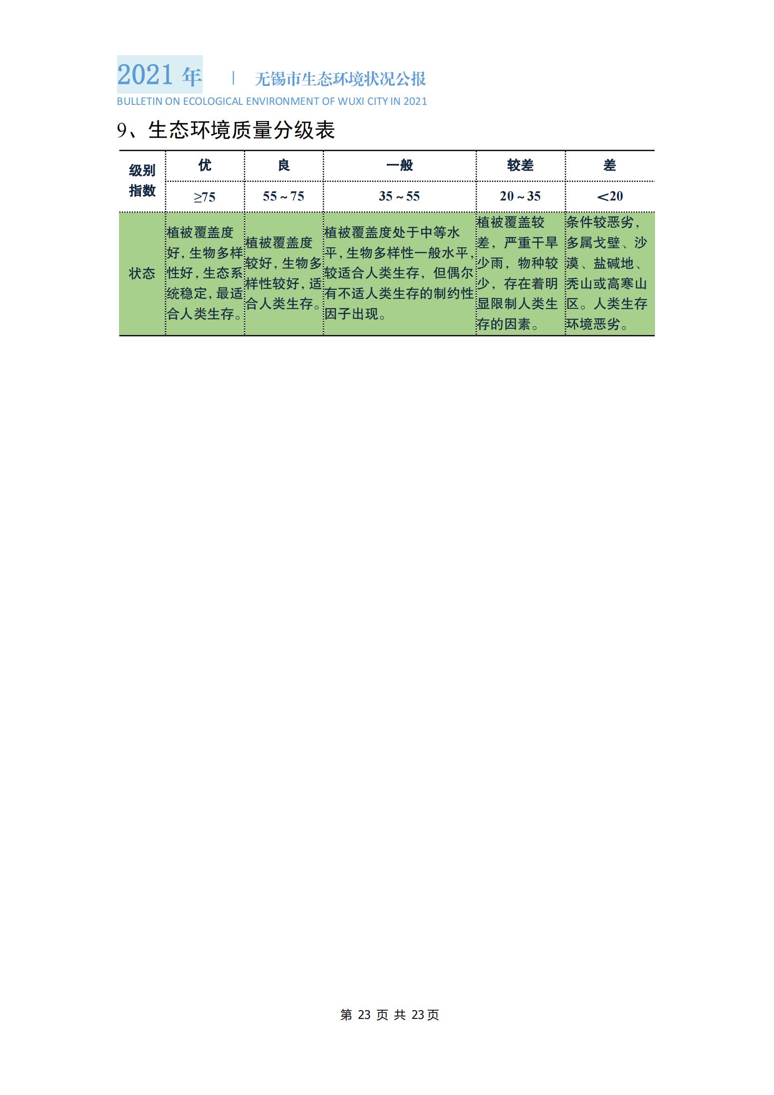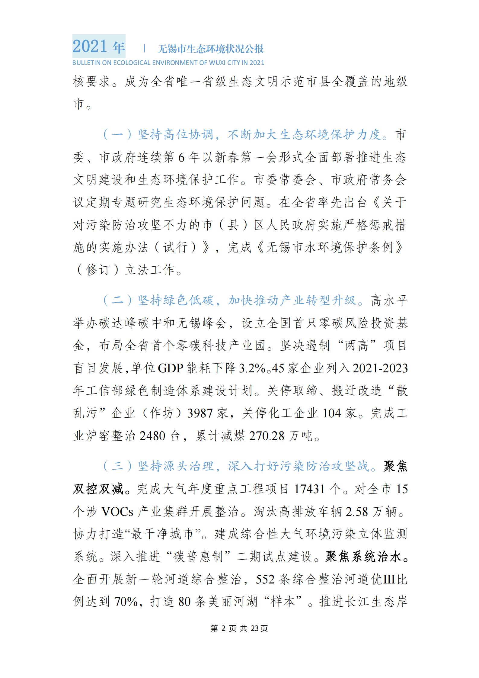 2021年度無錫市生態(tài)環(huán)境狀況公報(bào) |