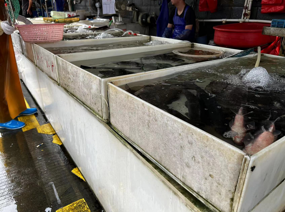 9月1日一早,記者走遍了整個蘇南水產(chǎn)城,答復都是一樣。蘇南水產(chǎn)城,是無錫最大的水產(chǎn)批發(fā)市場。市區(qū)農(nóng)貿(mào)市場的水產(chǎn)經(jīng)營戶多數(shù)都從這里拿貨。記者看到部分攤位有白魚銷售。
