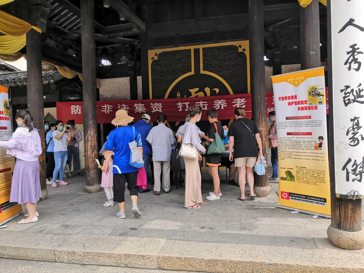 為進(jìn)一步推進(jìn)陽(yáng)光、透明、開放、服務(wù)型政府建設(shè),深入推進(jìn)政務(wù)公開,促進(jìn)政民互動(dòng)交流,8月25日上午,梁溪區(qū)地方金融監(jiān)管局會(huì)同惠山街道,聯(lián)合轄區(qū)公安派出所、市監(jiān)惠山分局等單位 ,在老年人集中的惠山古鎮(zhèn)開展了以“防范非法集資 打擊養(yǎng)老詐騙 安享幸福晚年”為主題的宣傳活動(dòng)。