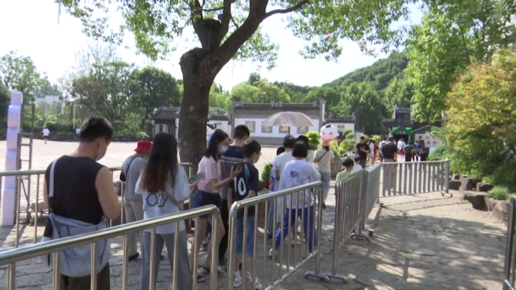 上午9點半,前來惠山古鎮(zhèn)景區(qū)游園的市民游客已經(jīng)排成了一條長龍。雖然景區(qū)客流較平日有所增加,但大家佩戴好口罩,主動配合工作人員進行掃碼和測溫工作,現(xiàn)場秩序井然。