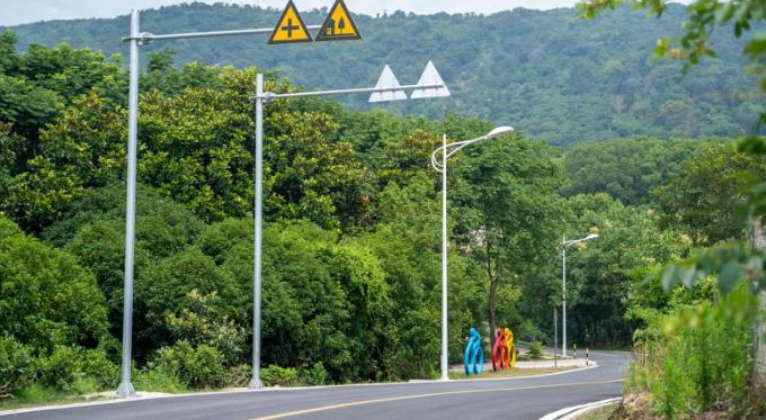 開車沿著嶂青路一路進(jìn)山,沿途綠地景觀、健身小品移步換景,竹籬笆及擋土墻美化等設(shè)計(jì)點(diǎn)綴其間,道路指示標(biāo)識、休憩座椅等一應(yīng)俱全,自然之美與幸福生活、生態(tài)旅游、鄉(xiāng)村振興融為一體。