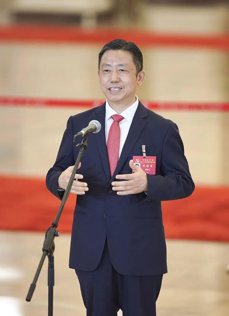 10月22日,中國共產(chǎn)黨第二十次全國代表大會(huì)閉幕會(huì)在北京人民大會(huì)堂舉行。這是閉幕會(huì)后,周海江代表接受采訪。新華社記者 才揚(yáng) 攝