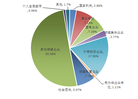 從繳存主體看,以非公群體為主,繳存人數(shù)占三季度實(shí)繳職工數(shù)的79.9%,其中城鎮(zhèn)私營(yíng)企業(yè)及其他城鎮(zhèn)企業(yè)職工繳存占比更是高達(dá)58.16%。具體繳存結(jié)構(gòu)如下: