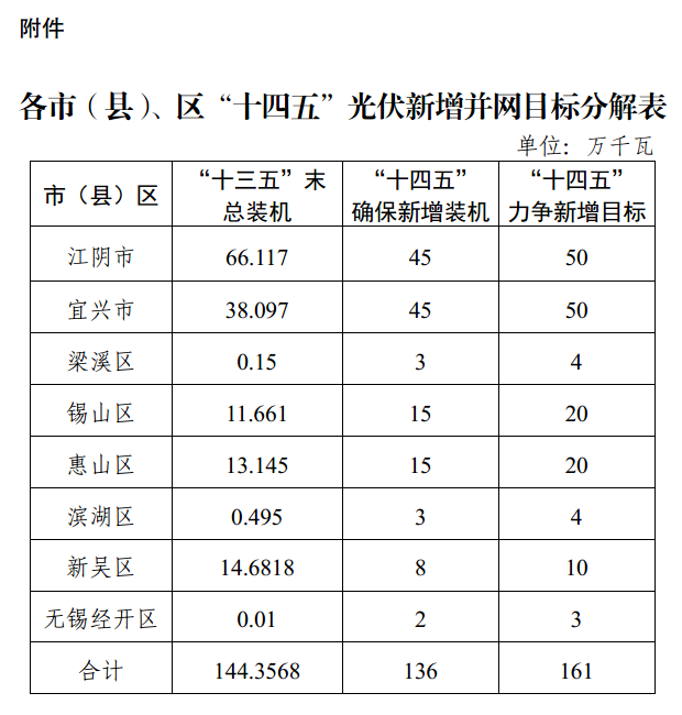 附件:各市(縣)、區(qū)“十四五”光伏新增并網(wǎng)目標分解表