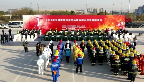 12月15日,2022年無錫市危險化學(xué)品綜合應(yīng)急救援演練在位于宜興市官林鎮(zhèn)的新材料產(chǎn)業(yè)園區(qū)?;吠\噲雠e行。