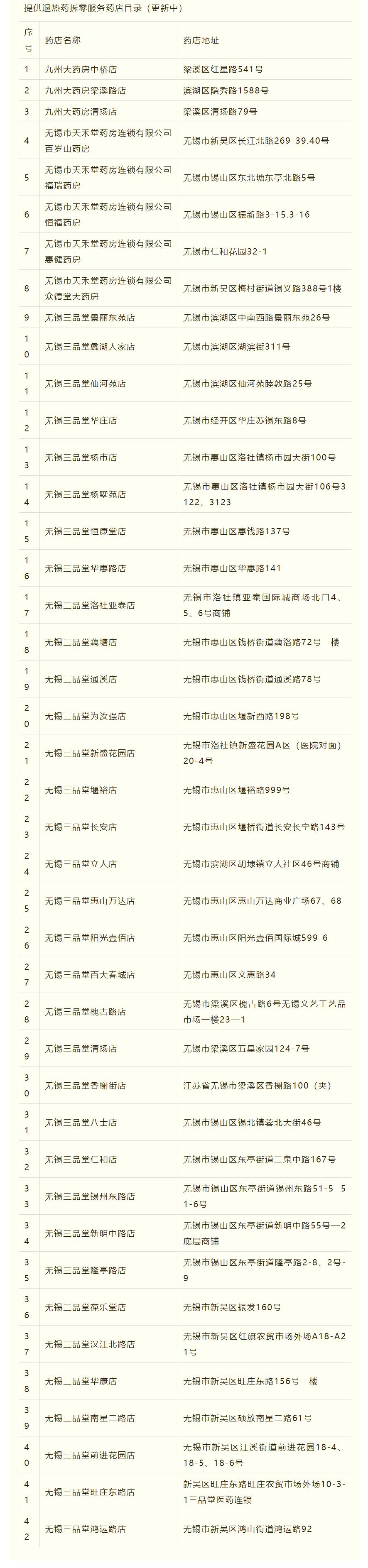 今天,政府部門(mén)公布首批42家提供退熱藥拆零服務(wù)藥店名字和地址。