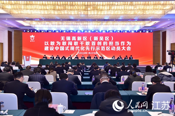 無(wú)錫高新區(qū)(新吳區(qū))建設(shè)中國(guó)式現(xiàn)代化先行示范區(qū)動(dòng)員大會(huì)現(xiàn)場(chǎng)。崔煒攝