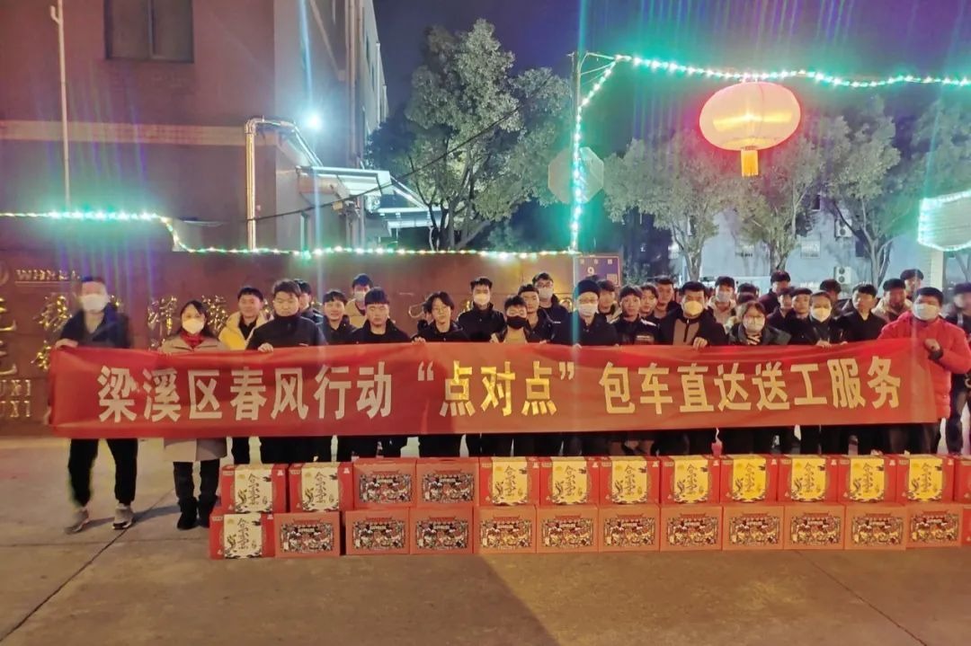 “來來來,大家遠(yuǎn)道而來辛苦了,公司食堂為大家專門安排了晚餐,大家吃過后就可以回宿舍休息了。”在精心安排下,務(wù)工人員一下車就吃上了熱騰騰的晚餐,一掃長途顛簸的疲憊。“梁溪的企業(yè)待遇好,城市也很美,而且‘點對點’專車方便又安全,政府還專門來慰問,我感到很暖心,家里也很放心。”來自菏澤市東明縣的返崗員工楊嘉輝從去年就入職了華洋公司,他表示,會在梁溪好好工作,爭取在這里安家立業(yè)。