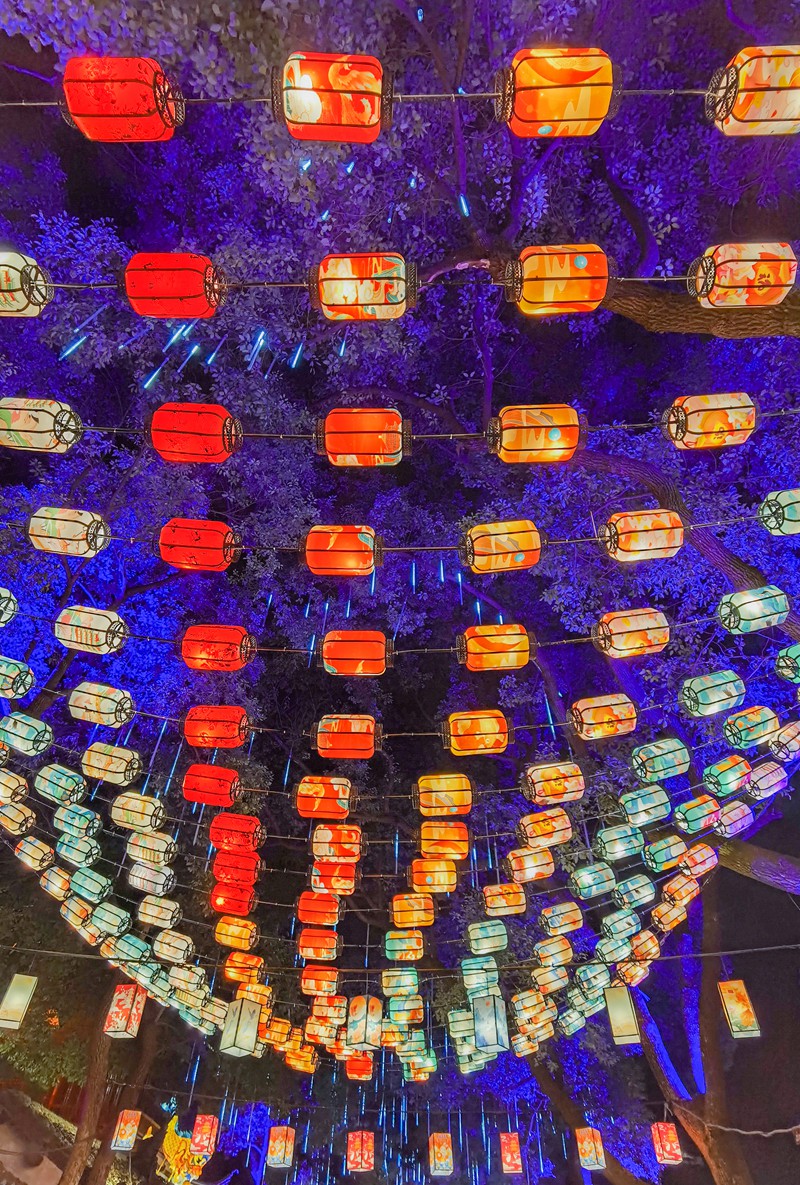 呼朋喚友,執(zhí)愛人手,攜親眷游。在流淌的燈影間嬉戲,抬頭便是詩詞浮動(dòng)的浩瀚星河,每縷燈光的曼妙落滿身,浪漫又熱鬧?;蚴屈c(diǎn)個(gè)花燈提著,在詩海中慢慢走,燈籠隨著走路輕輕晃動(dòng),月與光依舊,是沸騰的燈市中獨(dú)屬于一個(gè)人的安然。